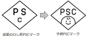 乳幼児用ベッド自体はこれまでも消費生活用製品安全法の特別特定製品に指定されていましたが、今般の改正で子供用特定製品にも指定されました。技術基準等の内容に変更はありませんが、改正法の施行(令和7年12月25日)よりも前に製造又は輸入された乳幼児用ベッドは、従前のひし形 PSCマークの表示が必要ですが、施行日以降はひし形子供PSCマークの表示が必要となります。なお、令和9年3月24日までの間は、従前のひし形PSCマークが表示された製品も販売されます。
