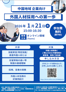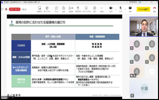 高度外国人材活躍中国地域コンソーシアム(事務局:中国経済産業局、JETRO広島、中国経済連合会)では、より多くの地域の事業者で高度外国人材の活躍を進めていくため、外国人材採用の第一歩と題した「企業向けセミナー」をオンラインで開催し、約60名の参加者がありました。